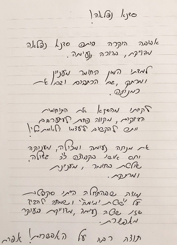 ממליצה בחום לכל אחת לתת את המתנה הזו לעצמה." (ש. אוקטובר 2019)