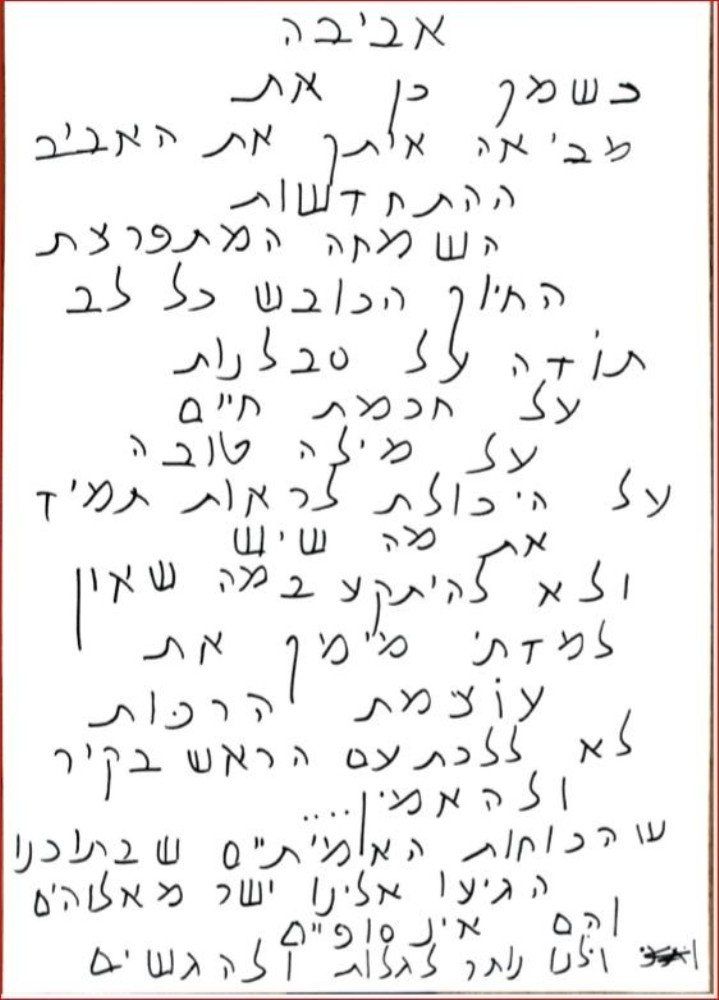 אביב הצליחה בעזרת החכמה, האינסטינקטים החזקים והרגישות המיוחדת, להצליח לפרוץ מבעד לחומת ״התקיעות״ ולדחוף אותי קדימה, בכל התחומים.